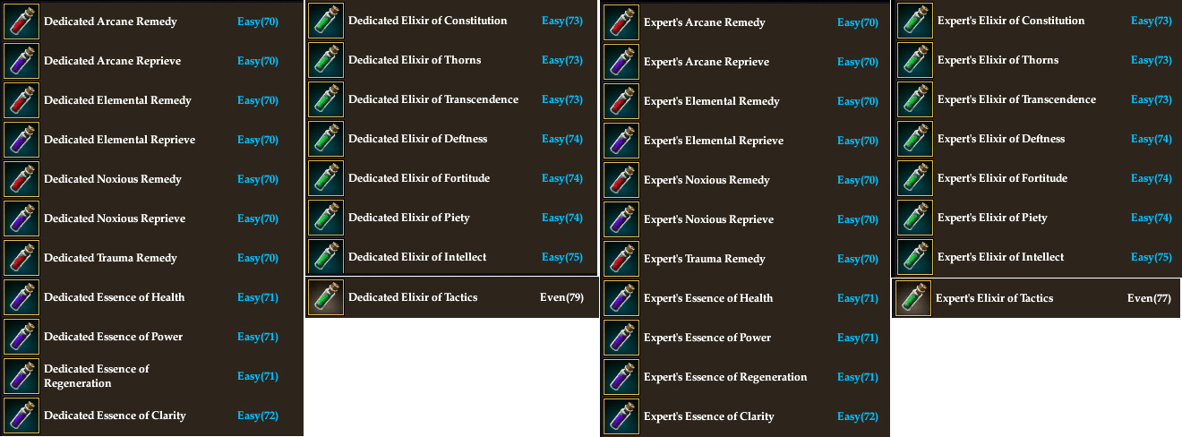 NOTE: T8 rare potions can only be used by adventurers level 72+